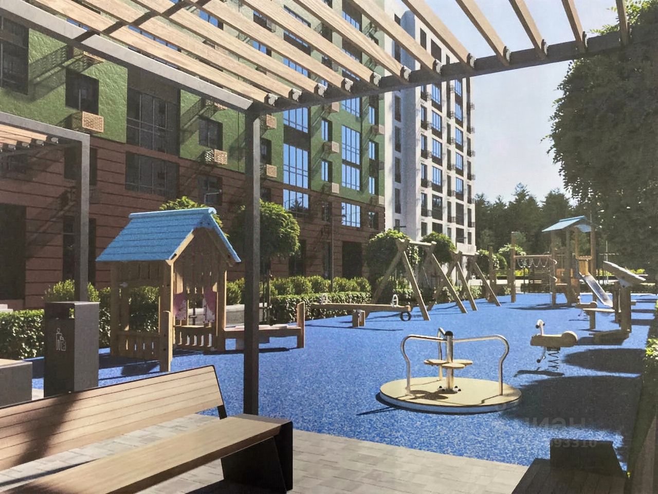 4 детские площадки и 4 площадки для отдыха взрослых