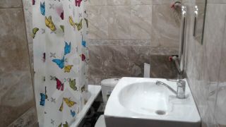 Евроремонт ( дорогая плитка в санузле, санузел совмещенный, дорогие и качественные обои, хорошие натяжные потолки со светильниками, качественный ламинат, можно с кухней, мебелью и техникой).