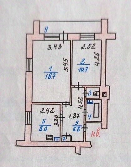 Просторные комнаты 19 и 11 м2 с большой застекленной лоджией 6 кв.м.