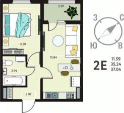 Просторная однокомнатная квартира с предчистовой отделкой в ЖК "ИНСТЕП.СИТИ" на 6 этаже. Общая площадь: 37.04 кв.м., жилая: 11.59 кв.м., площадь просторной кухни-столовой: 15.84 кв.м. Все окна выходят на одну сторону. В квартире одна лоджия, один совмещенный санузел. Высота потолков 2.64 м.