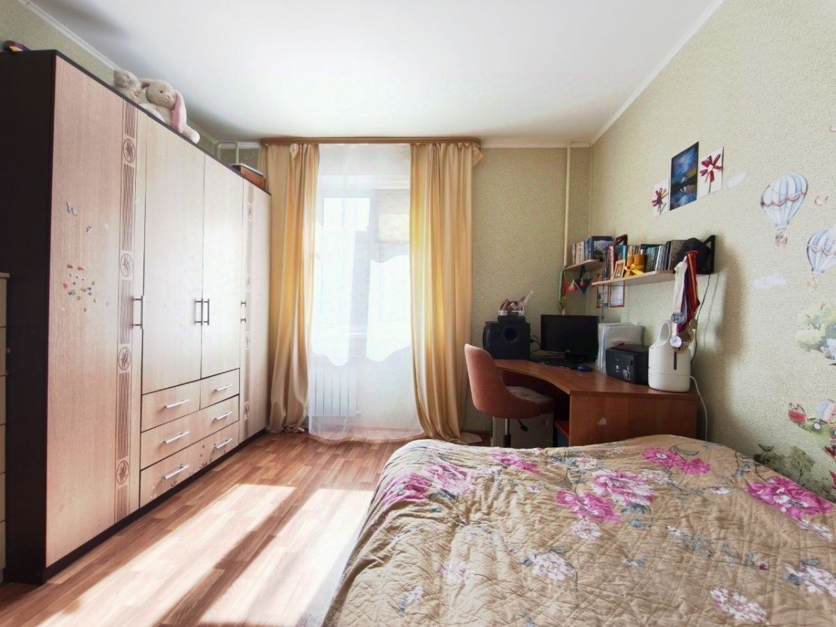 Квартира: светлая и очень теплая. Кухня в форме эркера, с тремя окнами, что дает много света и обеспечивает комфорт. Лоджия застеклена, установлены пластиковые стеклопакеты.