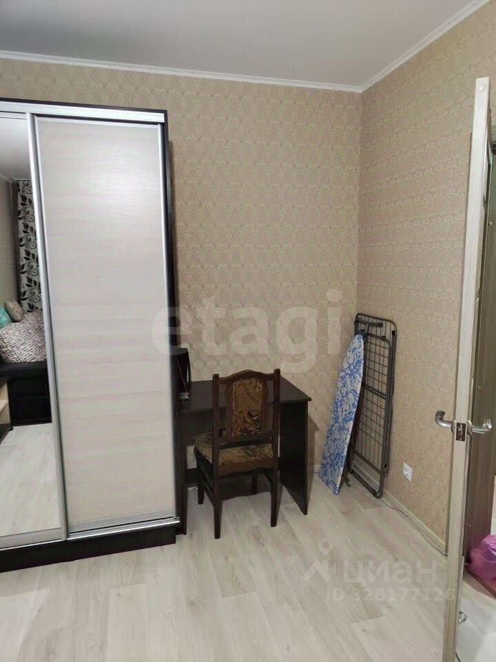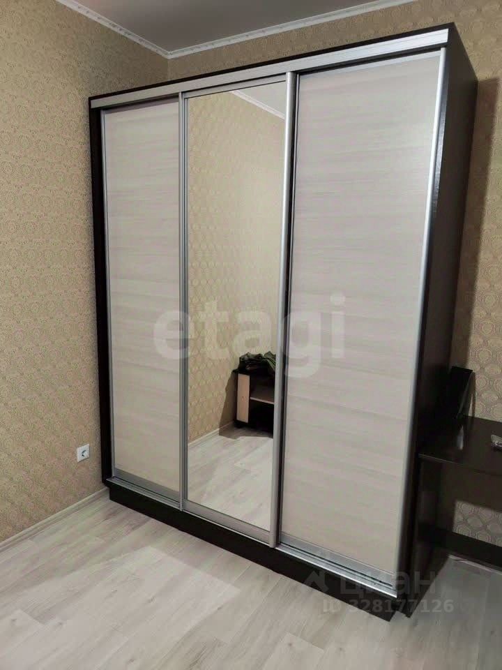 В комнате установлен вместительный шкаф-купе с зеркальными дверями, а также имеется удобный диван и обеденный стол с стульями. Санузел совмещенный.