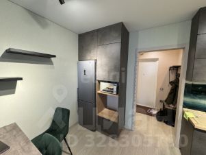 — Кухня-гостиная с современным гарнитуром: встроены холодильник, посудомоечная и стиральная машины.