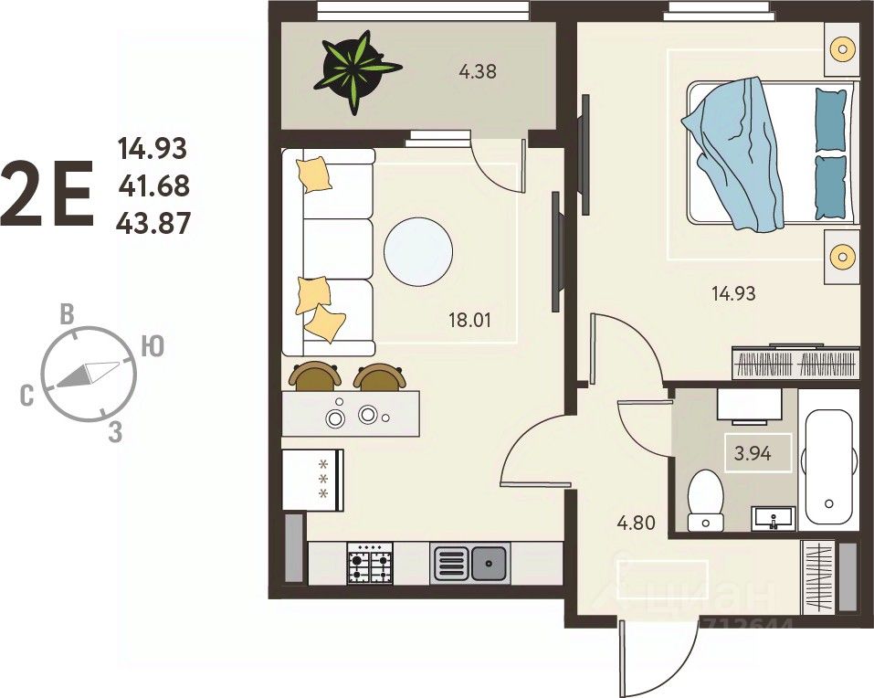 Однокомнатная квартира от застройщика с предчистовой отделкой в ЖК "ИНСТЕП.СИТИ" на 9 этаже. Общая площадь: 43.87 кв.м., жилая: 14.93 кв.м., площадь просторной кухни-столовой: 18.01 кв.м. Все окна выходят на одну сторону. В квартире одна лоджия, один совмещенный санузел. Высота потолков 2.64 м.