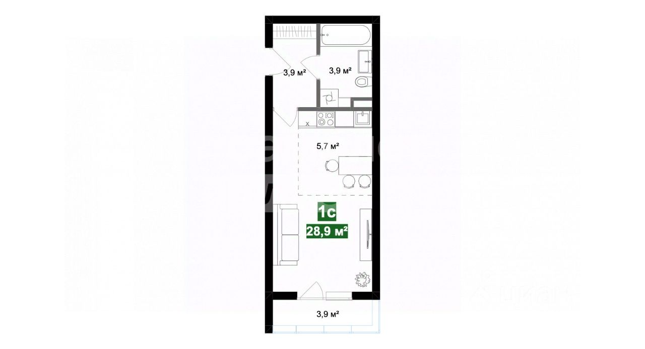 Площадь квартир варьируется от 28,9 до 68,5 кв. м.
