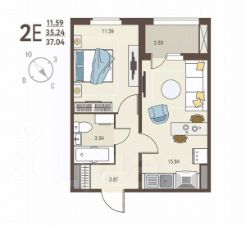 Общая площадь - 37.04 кв.м