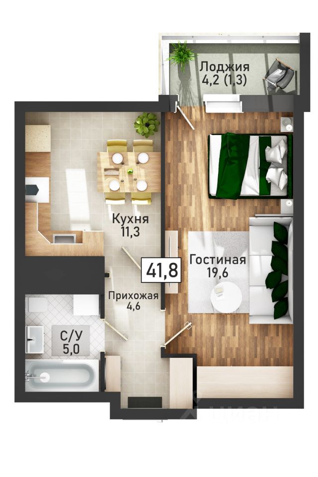 Просторная однокомнатная квартира от застройщика в строящемся жилом комплексе бизнес-класса "НОВАЯ ВЫСОТА".