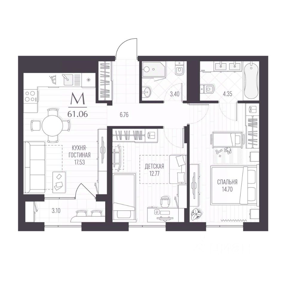 Общая площадь61,06 м²