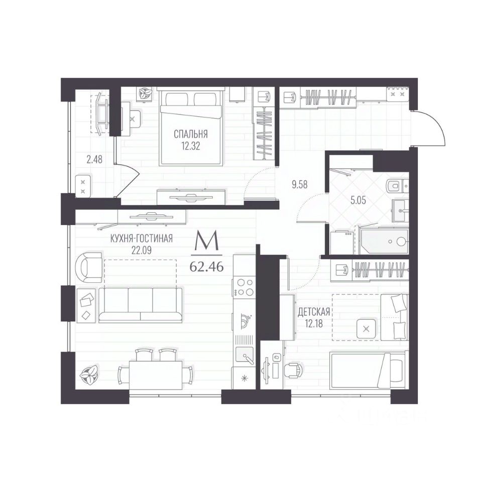 Общая площадь62,46 м²