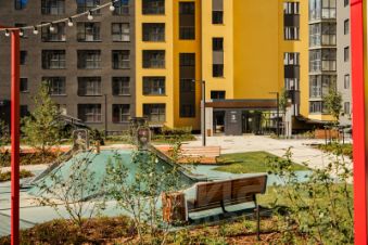 Во дворе представлено фирменное благоустройство от ИНСТЕПА, которое уже можно увидеть в сданных домах первой очереди большие игровые комплексы из натурального дерева в эко-стиле, высокие горки, пешеходные мосты, батуты и спортивные тренажеры с изменяемой нагрузкой. Продуманное озеленение по дендроплану с автополивом липы, клены, много хвойных деревьев, большие зоны с кустарниками (спиреи, можжевельники, пузыреплодники и другие тщательно подобранные растения). Во дворе предусмотрено наружное освещение на разных уровнях и гирлянды для вечерней подсветки.