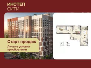 Просторная 2-комн. квартира с предчистовой отделкой в ЖК "ИНСТЕП.СИТИ" на 12 этаже. Общая площадь: 74 кв.м., жилая: 27.39 кв.м., площадь просторной кухни-столовой: 19.23 кв.м. Угловая квартира, идеально подойдет любителям тишины и панорамных видов. В квартире одна лоджия, один совмещенный и один раздельный санузел. Высота потолков 2.64 м.
