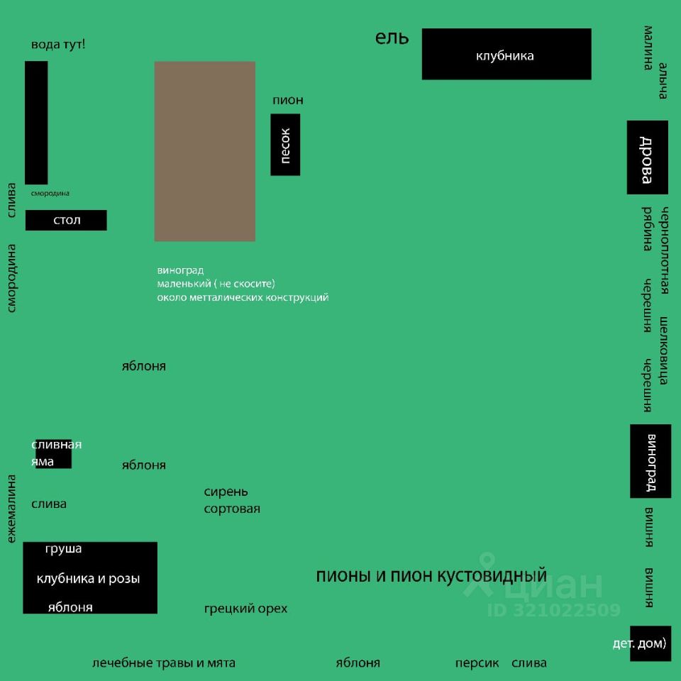 яблоня, виноград 2 вида, алыча, слива, шелковица, рябина ...