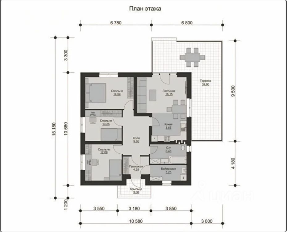 Удобная и продуманная планировка обеспечивает максимальный комфорт для всей семьи. Просторные комнаты, функциональные зоны и оптимальное распределение пространства делают этот дом идеальным для жизни.