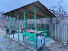 Двор благоустроен, выполнены садовые дорожки. Во дворе размещены надворные постройки, баня, хозблок, вольер для собаки.