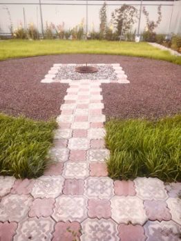 - Участок: огорожен забором, большой плодоносящий сад, множество декоративных растений, газон.