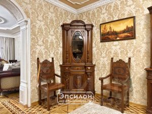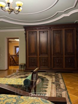 На первом этаже резиденции расположена просторная гостиная с камином, столовая, кухонное пространство, ванная, на втором - несколько спален, рабочий кабинет, оранжерея, огромная лоджия и второй санузел, в мансарде - гостевая, комнаты отдыха и библиотека. Полноценный отапливаемый подвал.