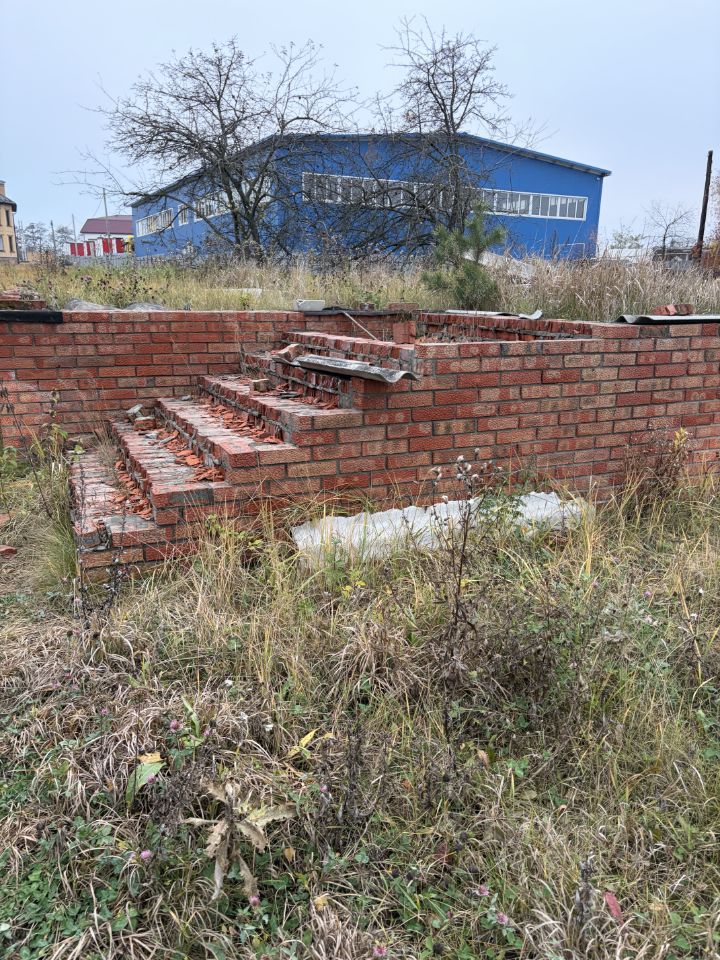 На участке имеется готовый фундамент 9*11 с цоколем и крыльцом из красного рядового кирпича, так же заведена вода и канализация, готовый септик (4 кольца), газ на участке. При желании можно поделить участок пополам.