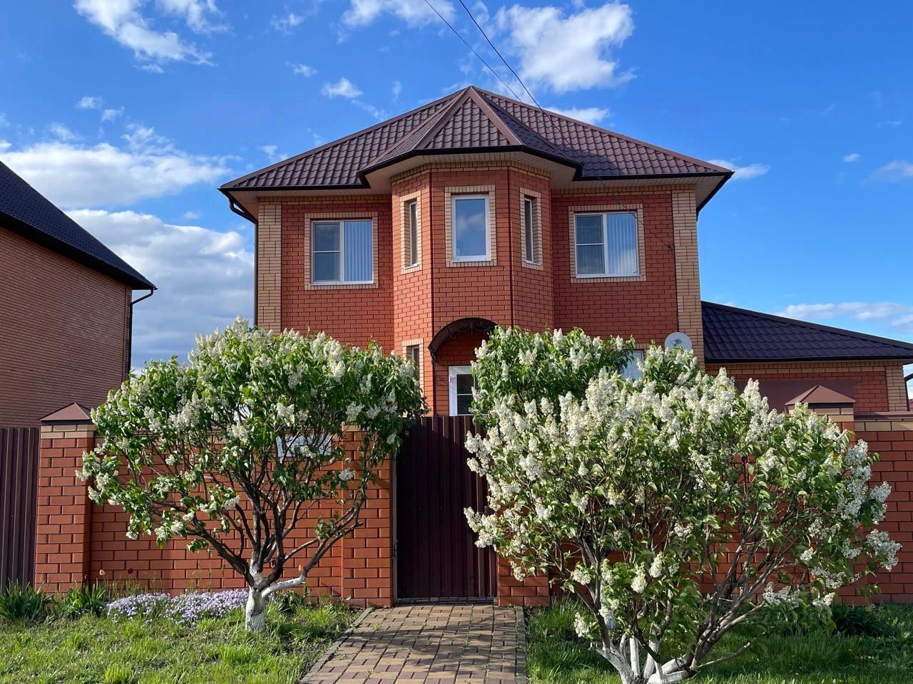 Дом тёплый, кирпичный, с ухоженным двором, зелёными растениями, есть отдельный небольшой огород. Мебель остаётся по договорённости.