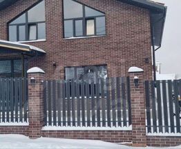Кровля выполнена из материала "Технониколь Фазенда" с утеплением 200 мм. Окна ламинированные в сером цвете. На участке установлен кирпичный забор с откатными воротами и организовано парковочное место.