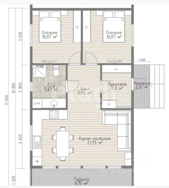 Просторный одноэтажный дом под чистовую отделку площадью 74.8 кв. м