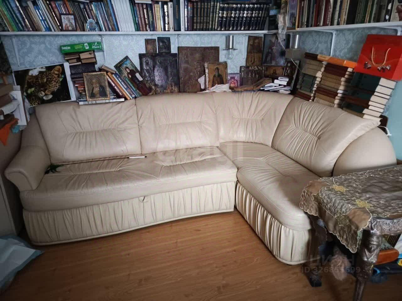 Внутри — ламинат, часть мебели остается. Планировка включает просторный погреб.
