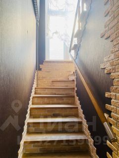 Лестница на второй этаж изготовлена из качественного бетона, порожки и перила отделаны дубом