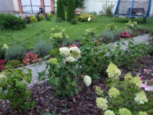 - За домом огород. Есть теплица. Почва -плодородный чернозем. Плодовые деревья (яблони, вишни, черешня, груша, слива), кустарники, клубника.