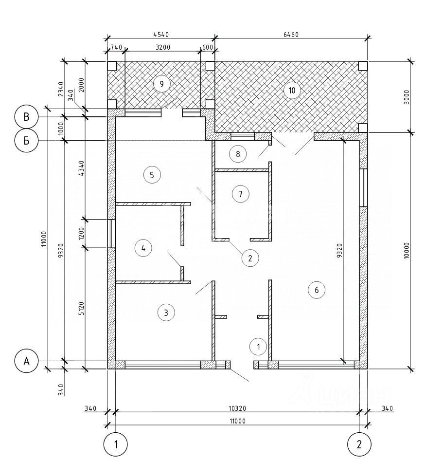 2. Фундамент: монолитная плита 220 мм. Бетон М 200 гранит. Армирование: Арм. 12. Арм. 10.