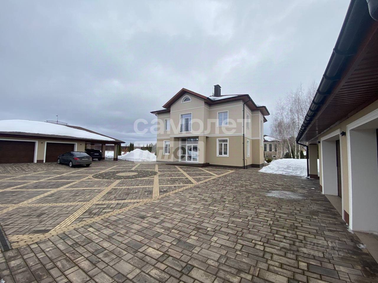 Дом располагает четырьмя крытыми машиноместами. Придомовая территория обустроена высококачественной плиткой и очаровательным ухоженным садом, который включает в себя как величественные березы, так и разнообразные декоративные растения, создающие неповторимую атмосферу.