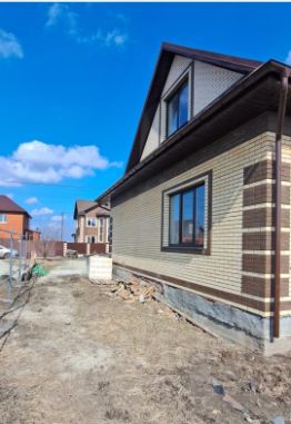 Дом построен из пеноблока и кирпича. Фундамент ленточный, мягкая кровля,перекрытия железобетон.