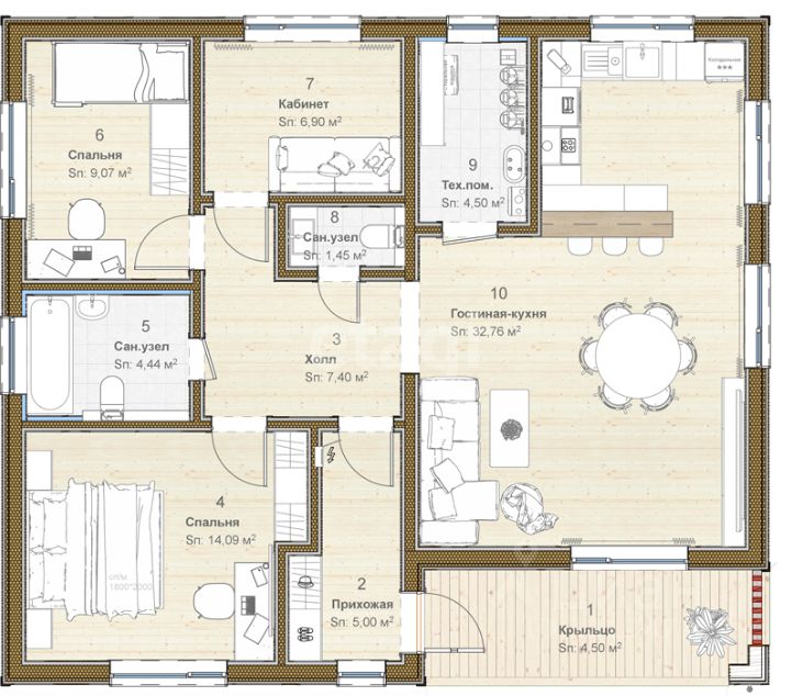 Высота потолков наполняет пространство светом и воздухом, а механизированная штукатурка и утепленная стяжка пола обеспечивают дополнительный комфорт.