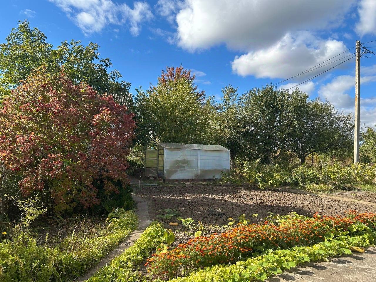 Площадь участка: Участок 15,7 соток. На территории расположены дом, кирпичный гараж, беседка, сарай, теплица с металлическим каркасом, уличный душ и туалет, базовый инвентарь. Земля ухожена. Есть плодоносящие взрослые деревья и кустарники. Подъезд круглогодичный. Соседние участки по линии дороги.