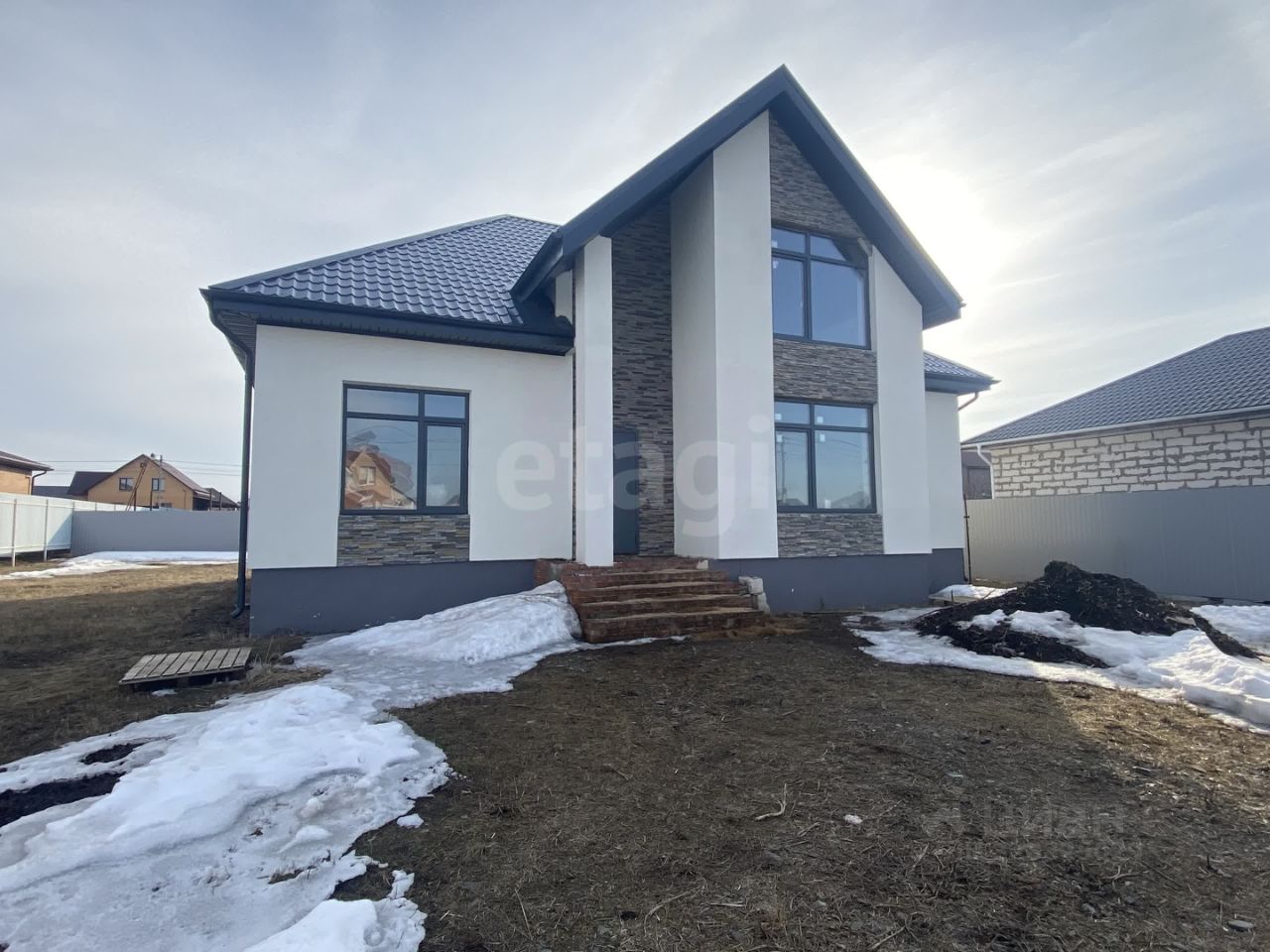 Предлагается к продаже современный двухэтажный дом для постоянного проживания, построенный из энергоэффективных аэробетонных блоков толщиной 400 мм с внешним утеплением и отделкой штукатуркой.