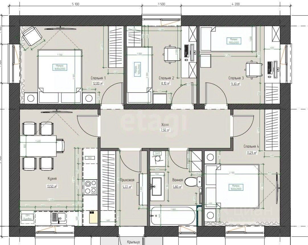 Проект под отделку white box предоставляет вам возможность создать пространство, отражающее ваш уникальный стиль и предпочтения. В доме 3 спальни, 1 ванная комнат, просторная кухня-гостиная.
