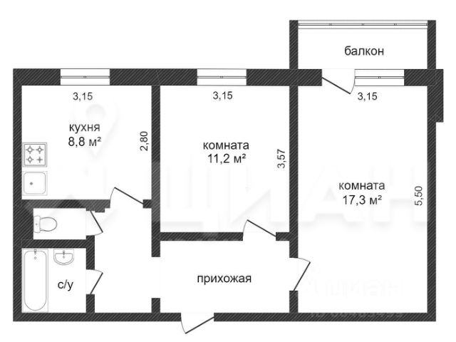 От года, комм. платежи не включены, комиссия 50%, залог 17 500 ₽